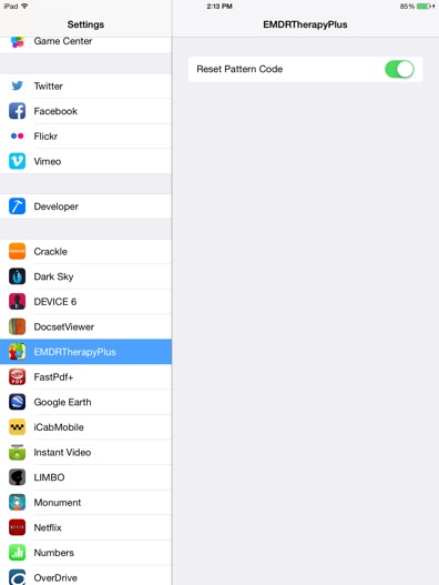Go to the Settings App and scroll down to find EMDRTherapyPlus. Select it and then enable the reset.
