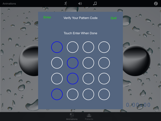 Set the Pattern Code: The first time the Patients tab is touched brings up this screen.