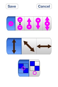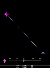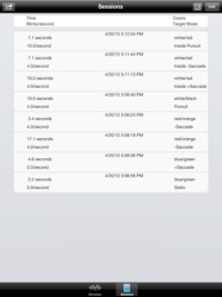 Switch between saccade, saccade+ pursuit, and pursuit by tapping the screen with two fingers. A short dashed line indicates saccade, a long dashed line indicates pursuit+saccade, a solid line pursuit.
